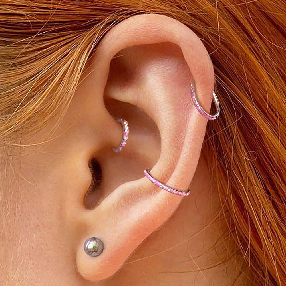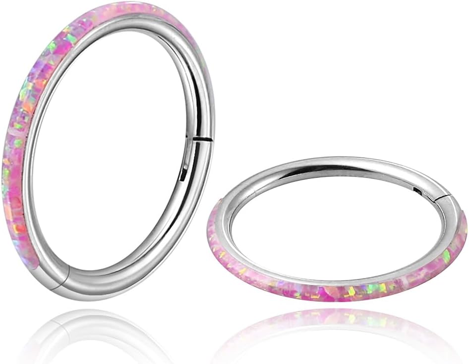 1PC ASTM F136 Titanium Opal Nose Rings Hoops,16g Hinged Septum Rings Seamless for Women Conch Helix Daith Earrings Piercing Jewelry Blue Pink white 6mm/8mm/10mm